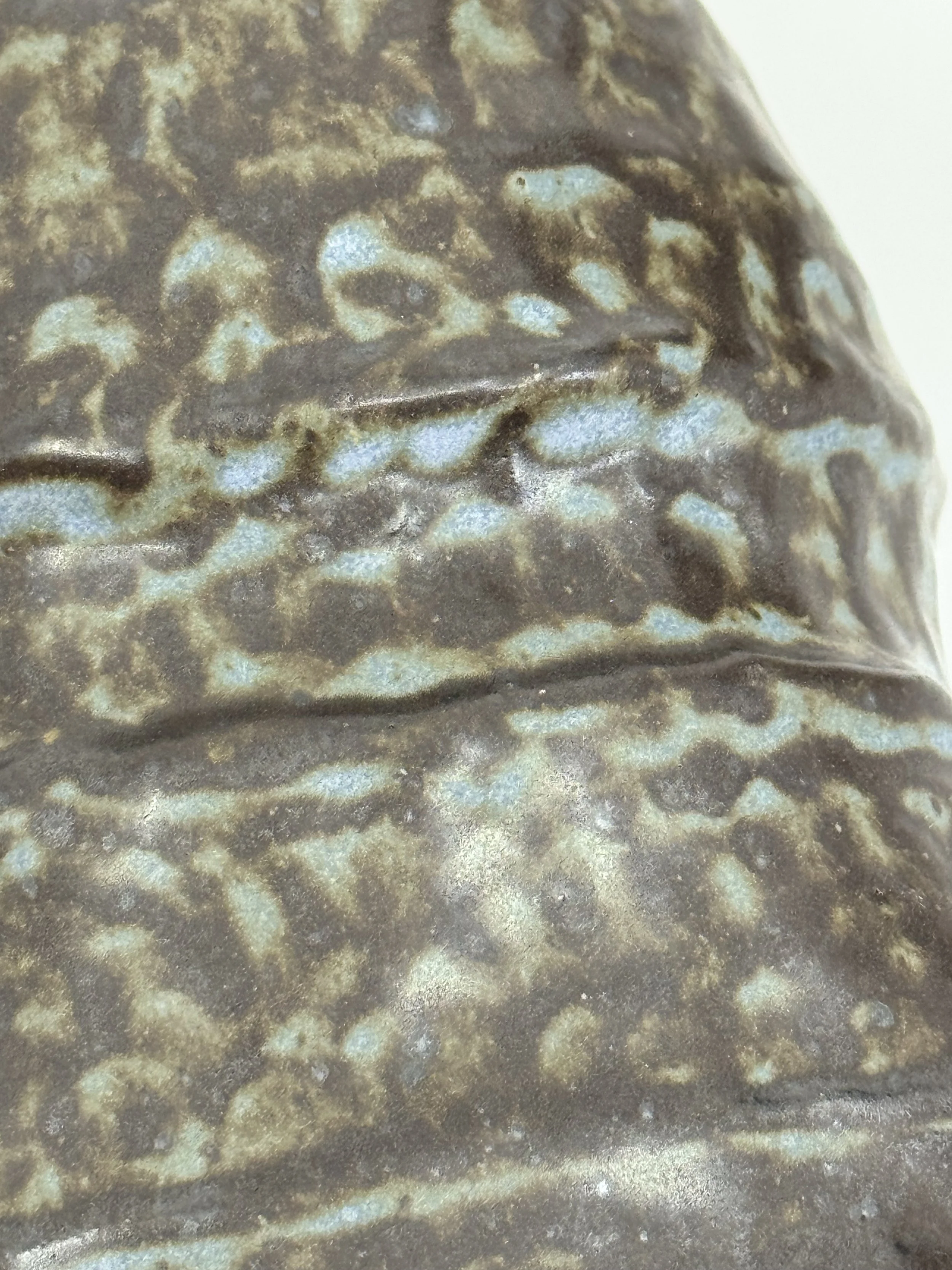 Brooklyn red clay with chocolate and cornflower blue matte glaze.