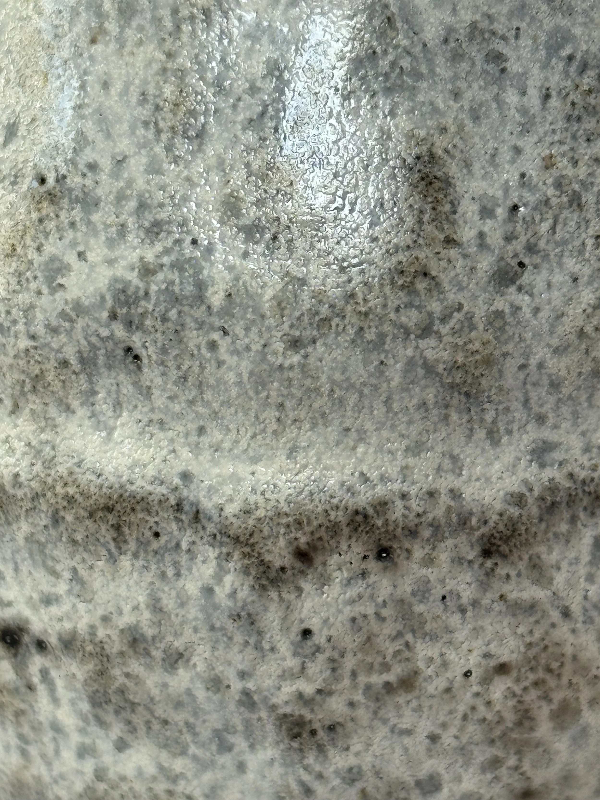 Black slip over red clay with translucent white glaze. Iron wash accents.